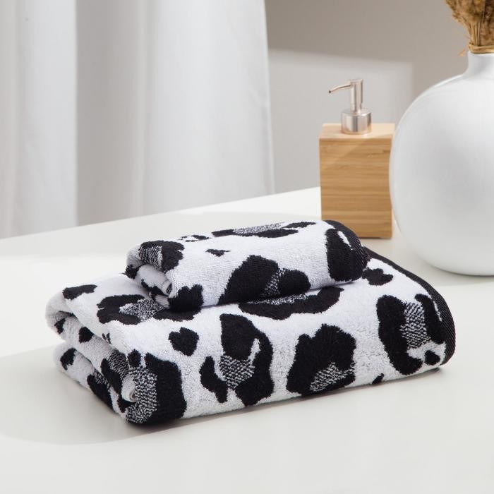 Полотенце махровое Этель ЧБ «Снежный барс», пестроткань, 30×60 см