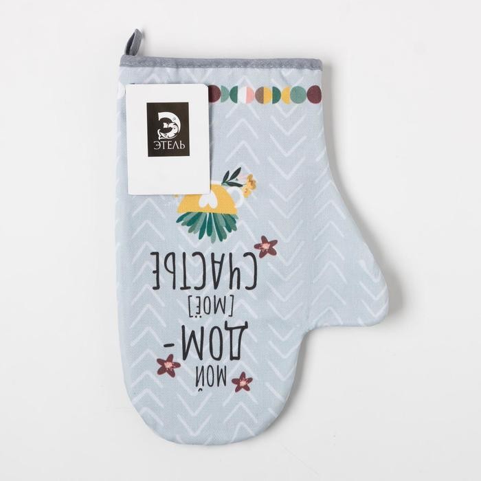 Варежка-прихватка «Мой дом- мое счастье» 20х28см, саржа, 100% х/л, ватин 250г/м2