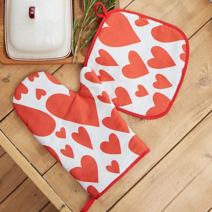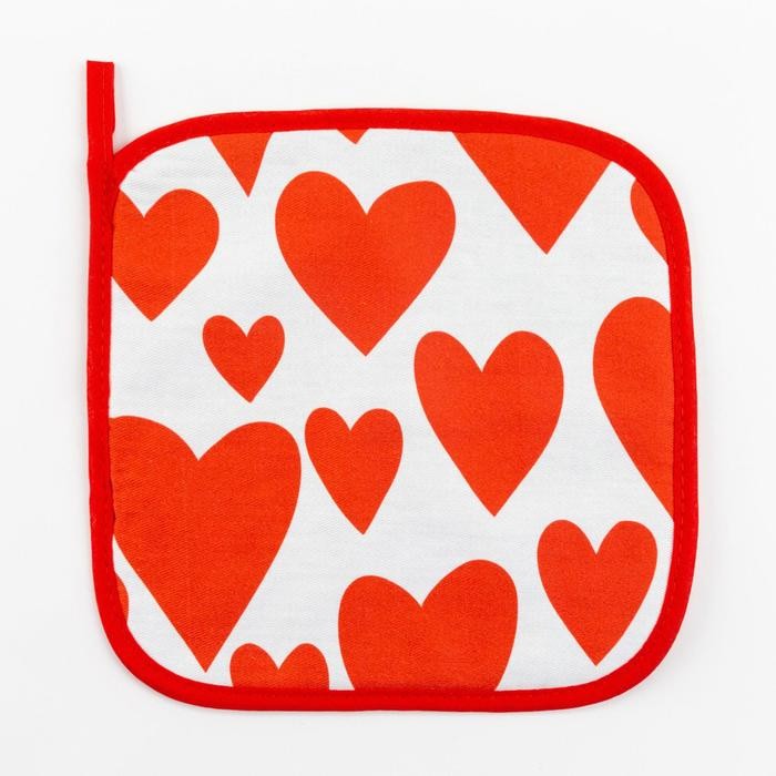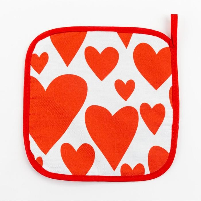 Прихватка «Этель» Red hearts19х19см,100% х/л, ватин 250г/м2 (двухсторонняя)
