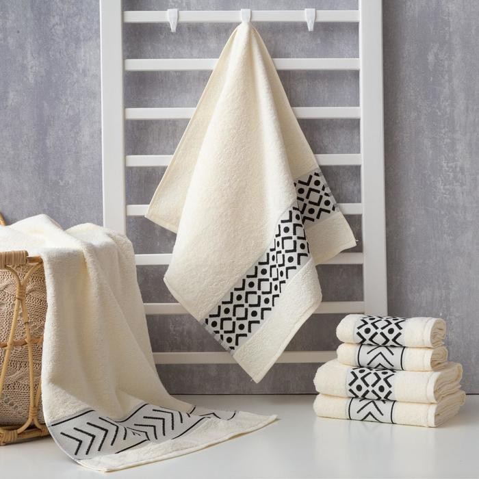 Полотенце махровое Этель «Орнамент», молочное 50×90 см, 100% хл, 370гр/м2