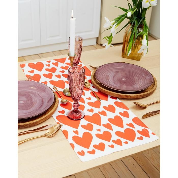 Дорожка на стол «Этель» Red hearts 30х70см, 100% хл, саржа 190 г/м2