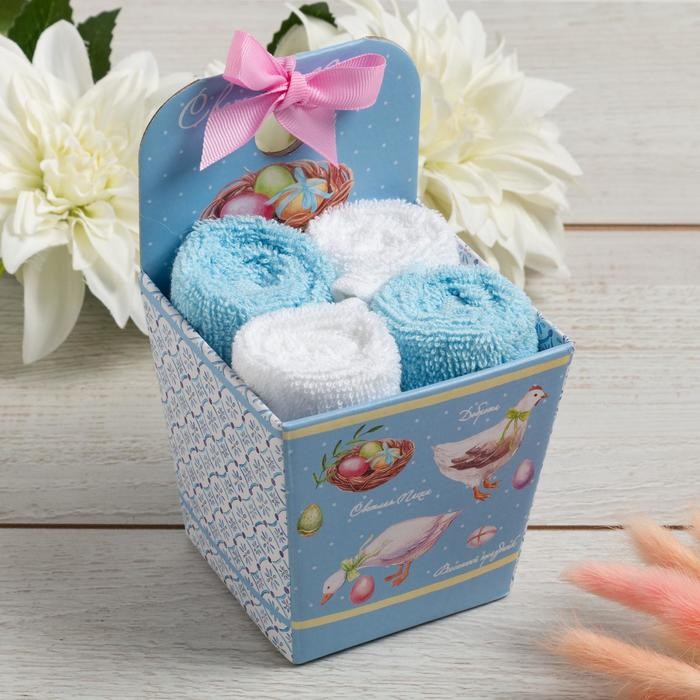Набор махровых полотенец «Пасха» 30×30 см — 4 шт, 100% хлопок, 340 гр/м2