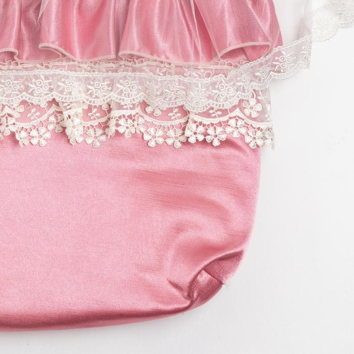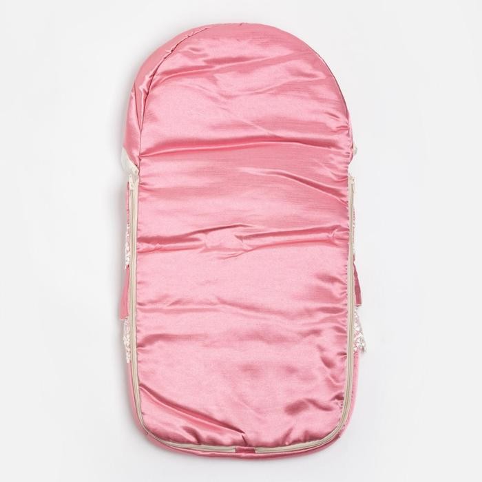 Конверт на двух боковых молниях выполнен из тонкого атласа с мягким шелковистым отливом. Есть съёмная вуаль. Подойдёт на выписку из родильного дома для прогулки.