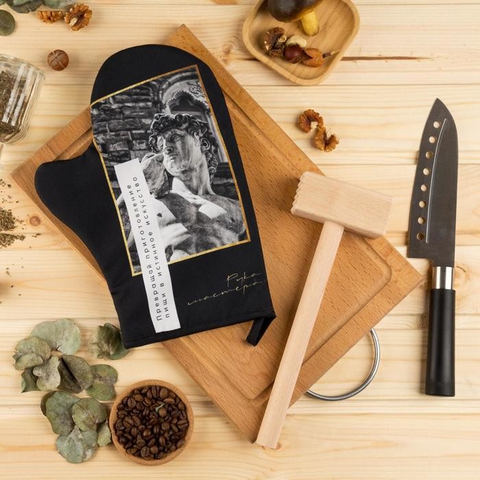 Кухонный набор «Искусный мастер»,варежка-прихватка 20х28см, молоток деревянный