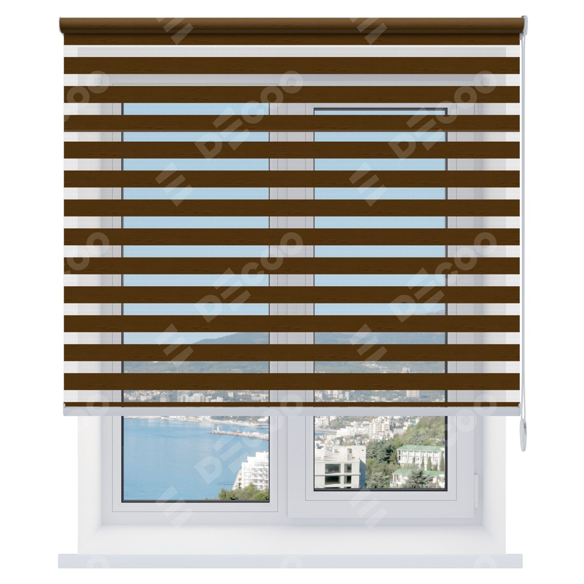 Рулонная штора День-ночь Wood венге предоставлена в следующих характеристиках: