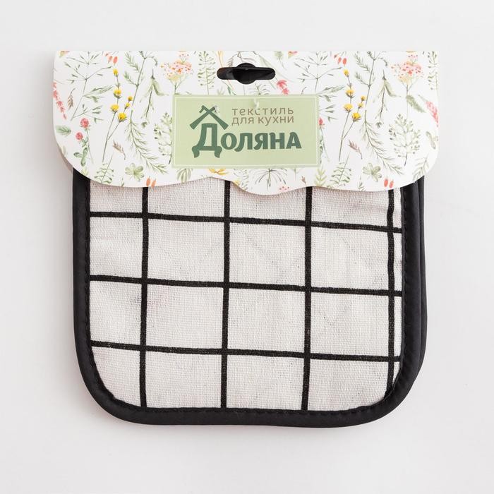 Кухонный набор (2 предмета) Доляна «Клетка», цвет белый, прихватка 17×17 см — 2 шт, 100% п/э