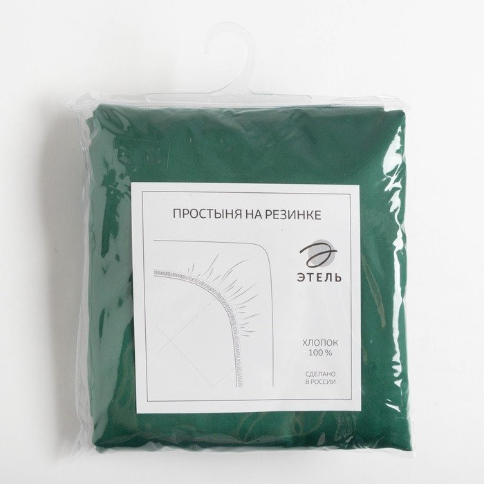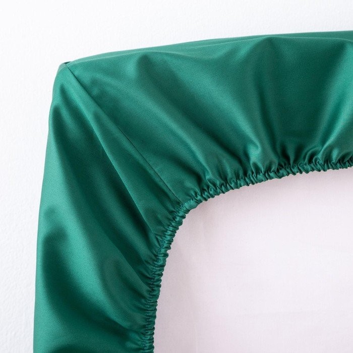 Простыня на резинке Этель 180*200*25 см, цв.изумрудный, 100% хлопок, мако-сатин, 125 г/м²