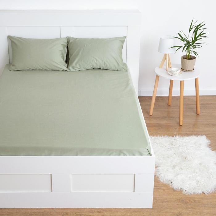 Простыня Этель 235*260 см, цв.оливковый, 100% хлопок, мако-сатин, 125 г/м²