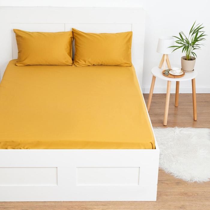 Простыня на резинке Этель 180*200*25 см, цв.горчичный, 100% хлопок, мако-сатин, 125 г/м²