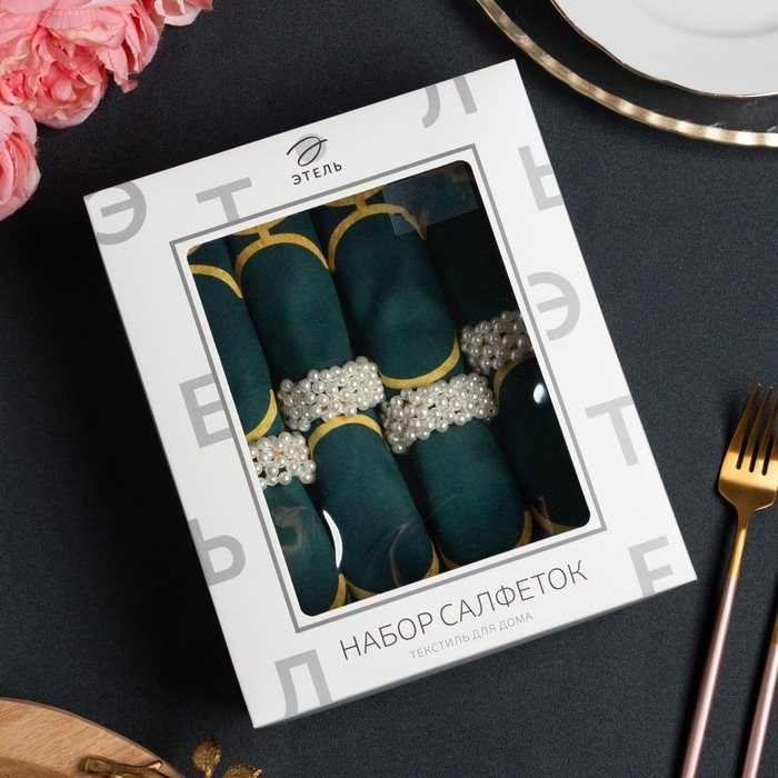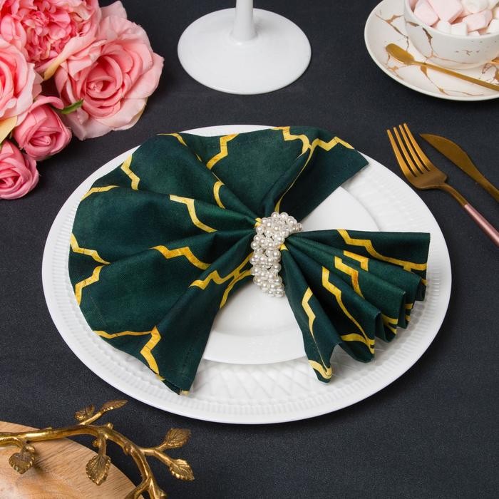 Набор салфеток с декорат. кольцами «Малахит» 46х46см — 4 шт, 100% хл, саржа 190гр/м2