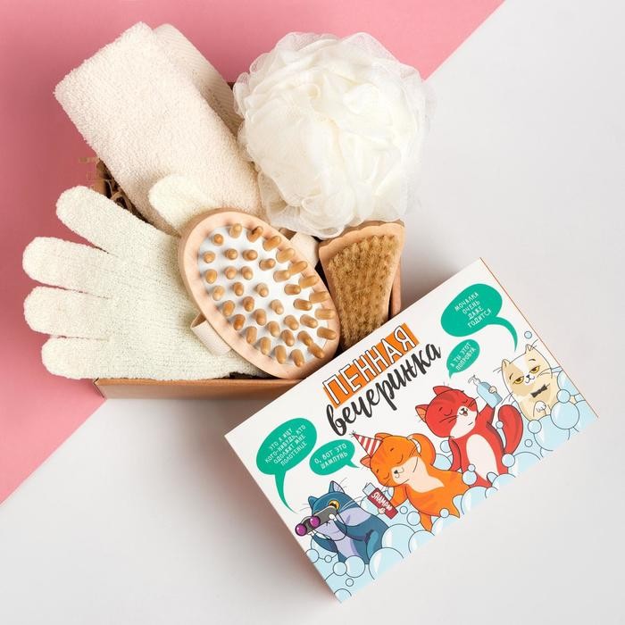 Подарочный набор «Пенная вечеринка» полотенце 30×60 см и банные акс.